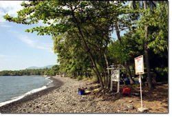 さっそくゴロタ石でいっぱいのビーチに移動し、