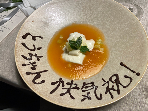陽が傾いて涼しくなってきたので、パーゴラ状のテラス席で頂いた。